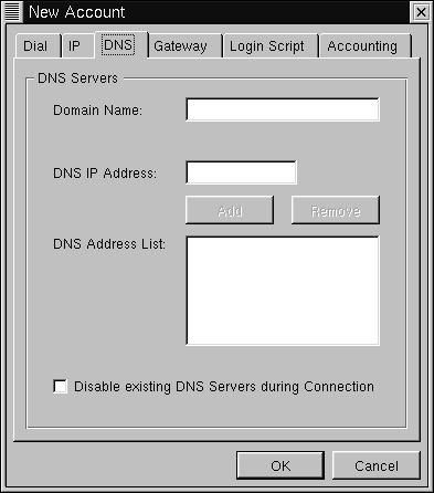 Click on the tab marked "DNS". Here you can set up DNS. Fill in the appropriate fields with the information supplied from your ISP.