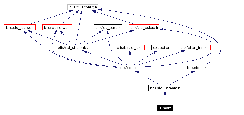 Whole document tree istream File Reference#include <bits/std_istream.h>Include dependency graph for istream: ![]() This graph shows which files directly or indirectly include this file: ![]() Go to the source code of this file. Generated on Mon Apr 8 03:13:20 2002 for libstdc++-v3 Source by 1.2.15