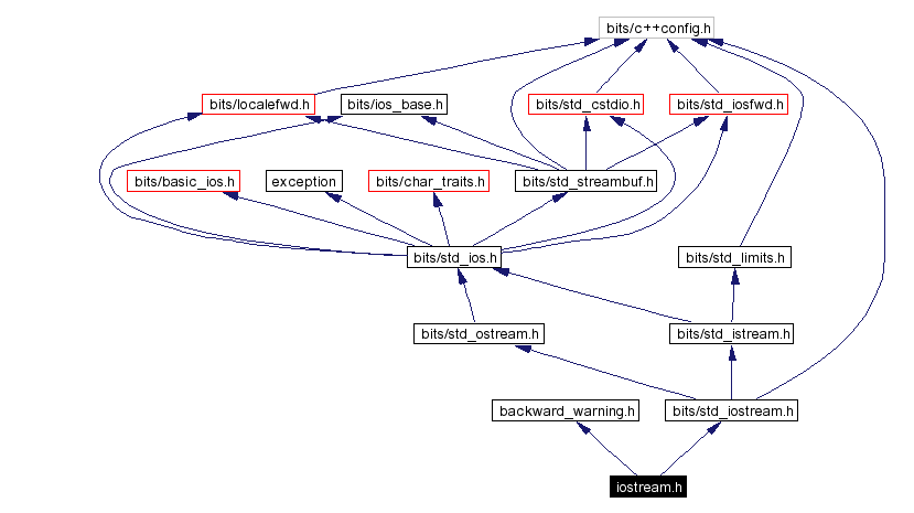 Whole document tree iostream.h File Reference#include "backward_warning.h"#include <bits/std_iostream.h>Include dependency graph for iostream.h: ![]() This graph shows which files directly or indirectly include this file: ![]() Go to the source code of this file.