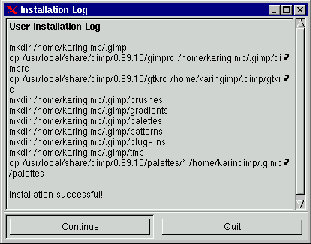 If there were no errors, Gimp built okay, and it's time to install it. To do that, enter the command: make -install which by default will install Gimp in /usr/local/bin, its plug-ins in /usr/local/lib/gimp/1.0 and